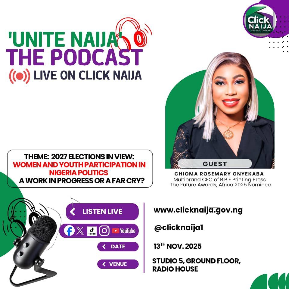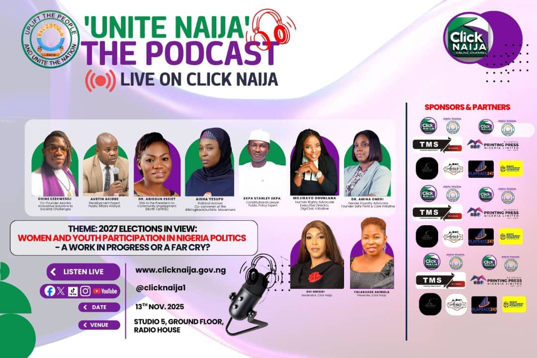 Abuja, Nigeria — Studio 5 at Radio House in Abuja came alive with bold ideas and urgent conversations as Click Naija Online Channel hosted a compelling edition of Unite Naija: The Podcast, bringing together some of Nigeria’s most influential civic voices to interrogate the future of political inclusion in the country.